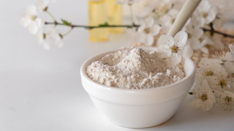 Utilizado por su capacidad absorbente en mascarillas, polvos y productos de cuidado de la piel.